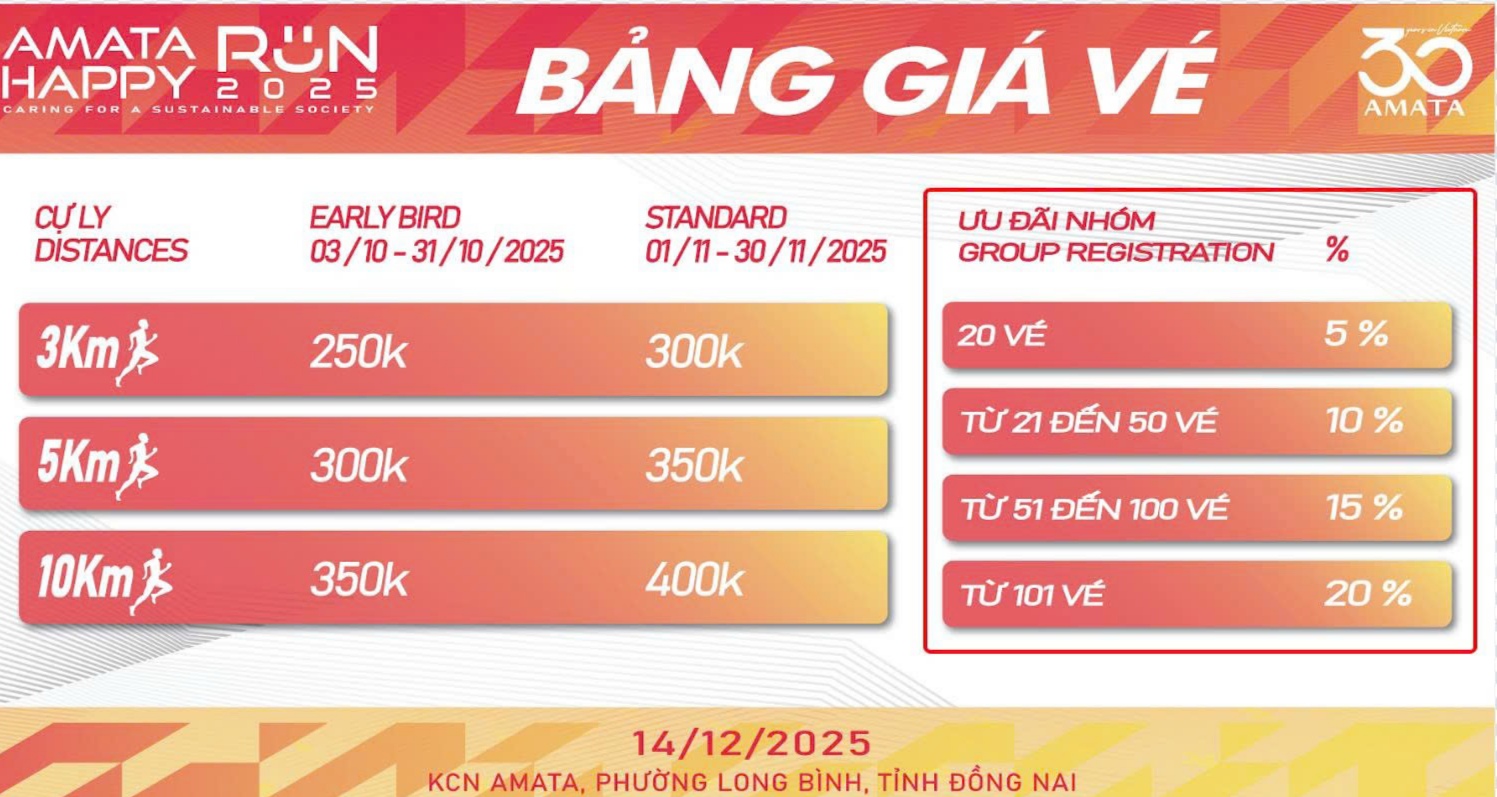 Hãy ĐĂNG KÝ NGAY để cùng chúng tôi chinh phục đường chạy Amata Happy Run 2025 – nơi mỗi bước chạy của bạn không chỉ rèn luyện sức khỏe mà còn góp phần tạo nên những giá trị tích cực cho cộng đồng!