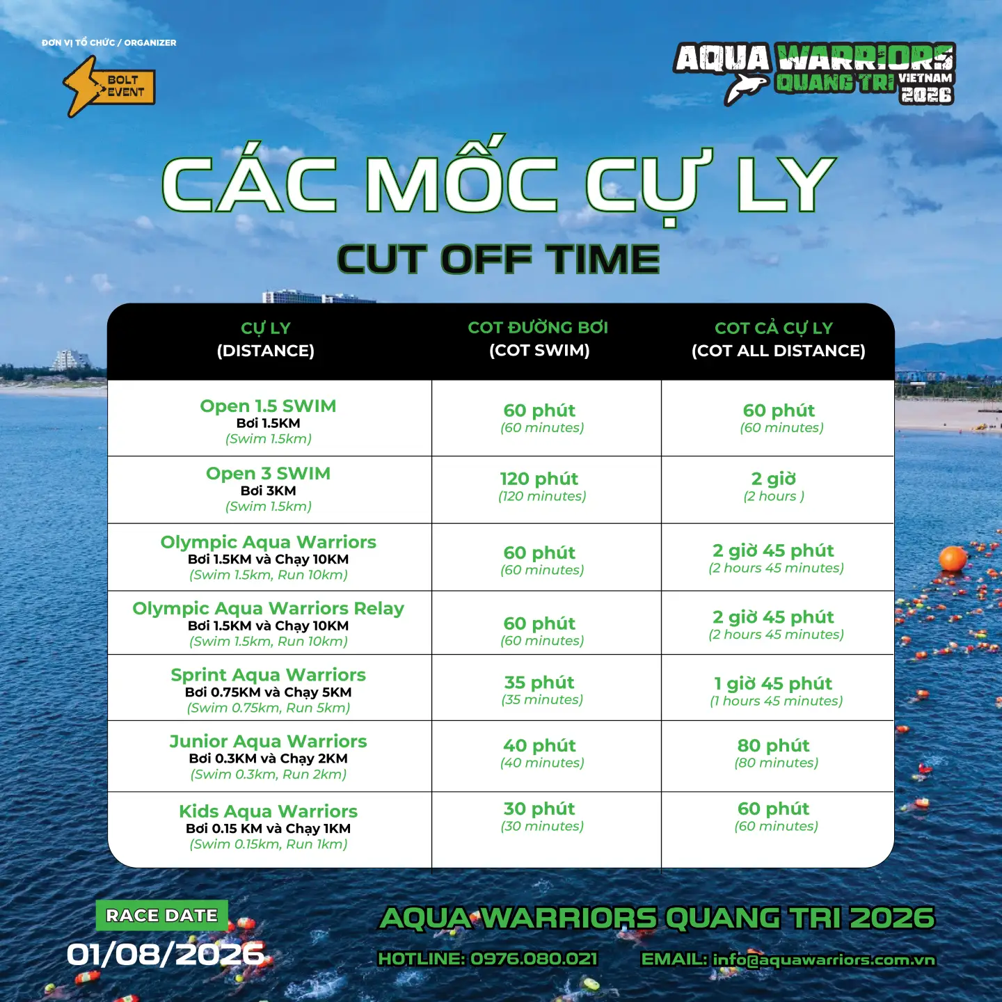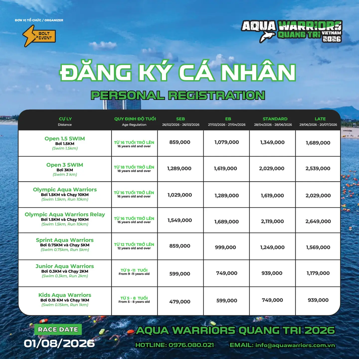 Aqua Warriors Quảng Trị trở lại với diện mạo bứt phá, mang đến hành trình thử thách mới dành cho cộng đồng yêu thể thao sức bền. Điểm nhấn đặc biệt của mùa giải năm nay là cự ly Open Swim 3km – thử thách bơi biển 3km dành cho những vận động viên sẵn sàng vượt qua giới hạn bản thân, chinh phục sóng nước và kiểm chứng bản lĩnh.