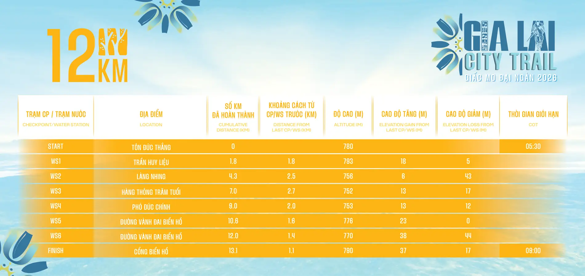 | 12KM | Từ 12 tuổi trở lên | 3 tiếng 30 phút |