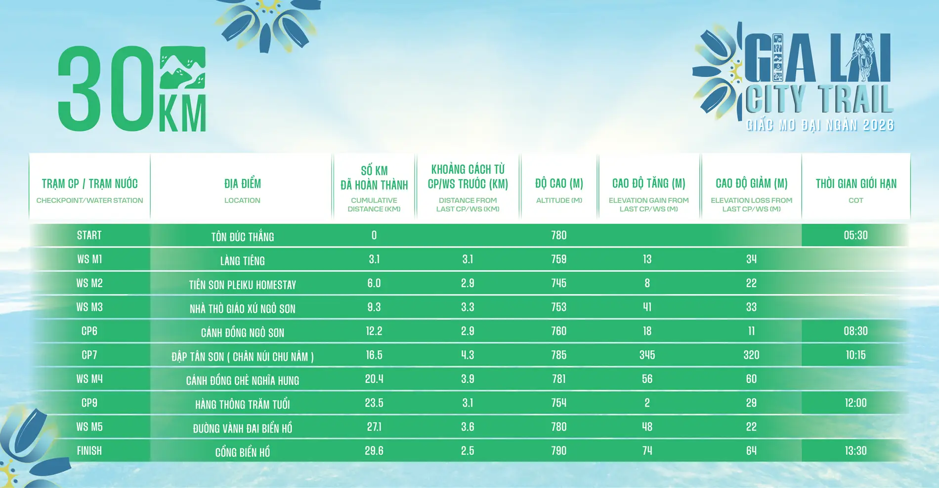 | 30KM | Từ 18 tuổi trở lên | 8 tiếng |
