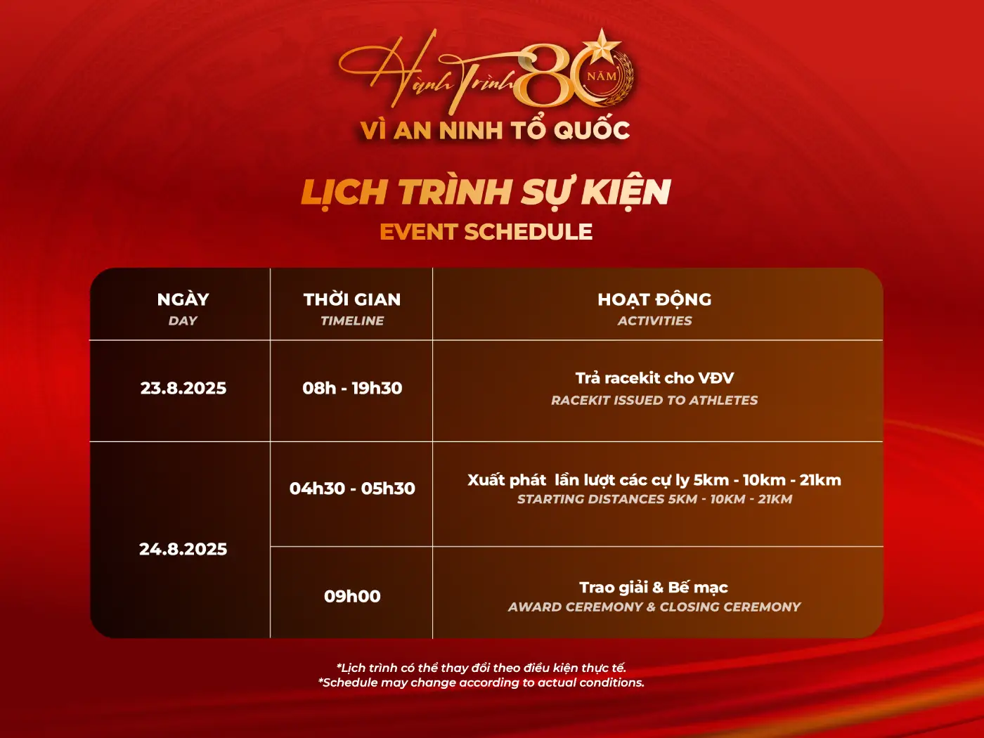 Vì An ninh Tổ quốc. Vì tình yêu đất nước. Hẹn nhau tại Phan Thiết – nơi mỗi bước chân là một lời hứa, mỗi nhịp tim là một câu chuyện, và mỗi người tham gia là một phần của hành trình 80 năm bất khuất.