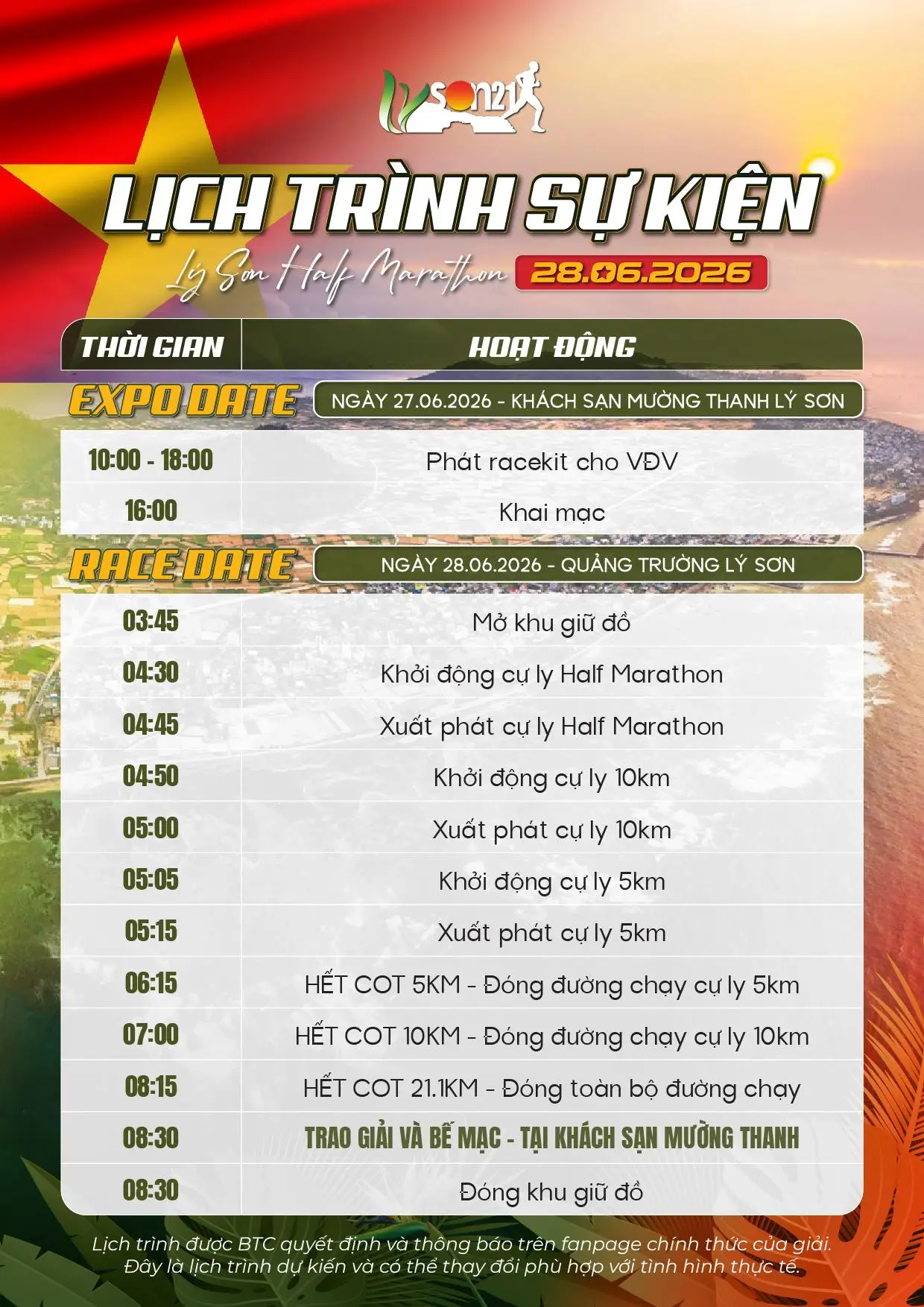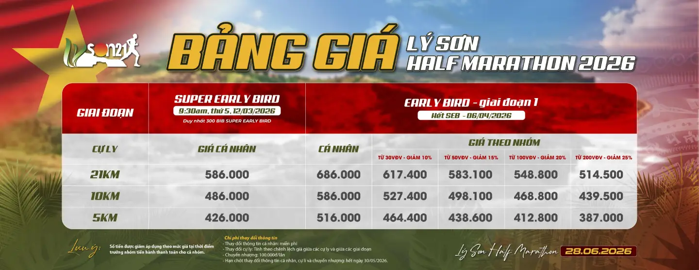 - Tất cả các thông tin chính thức sẽ được Ban Tổ Chức (BTC) công bố tại fanpage Lý Sơn Half Marathon.