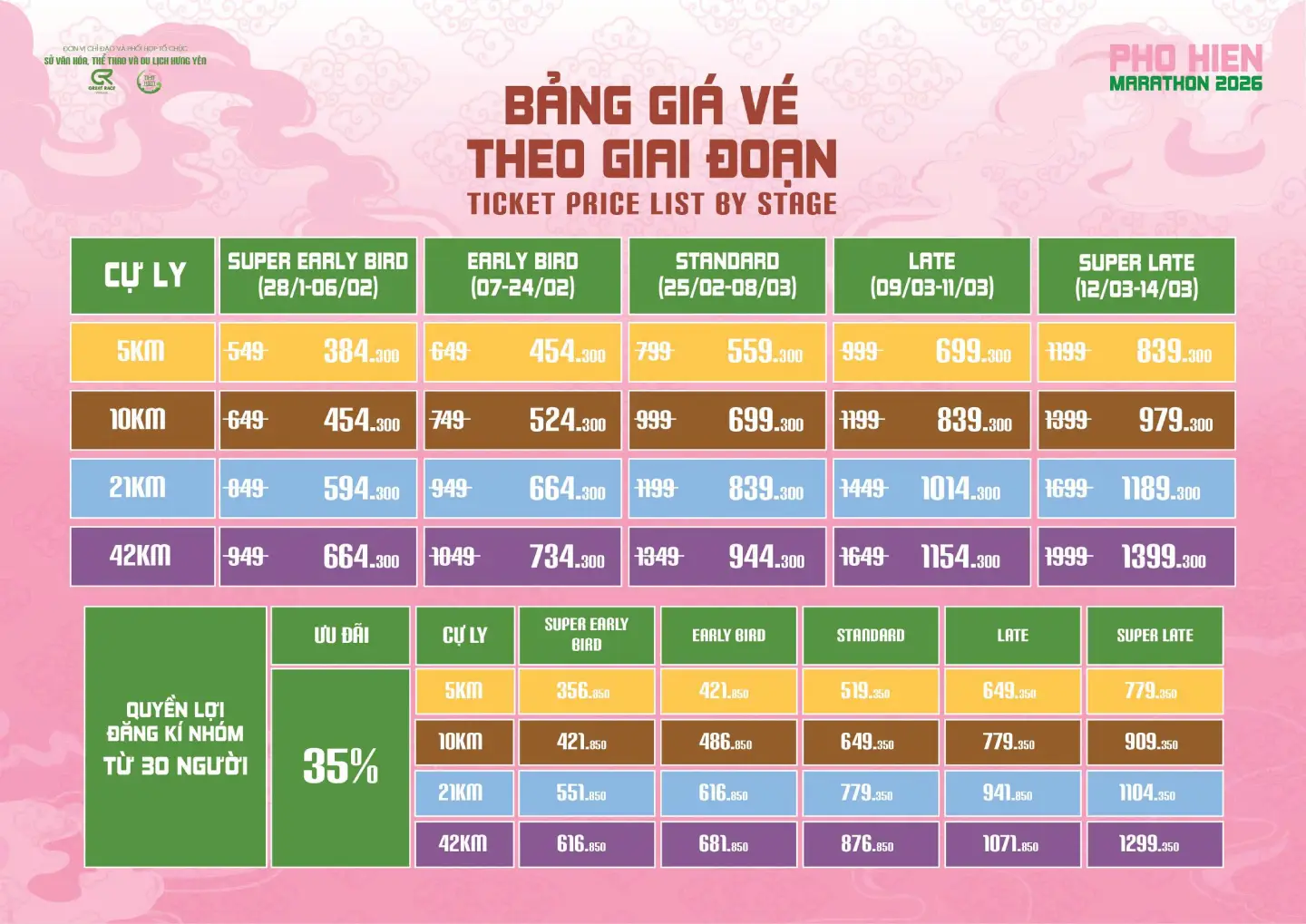 - Trường hợp nâng cự ly thi đấu: VĐV Thanh phí thay đổi cự ly và thanh toán thêm phí chênh lệch của cự ly cao hơn tại giai đoạn đang diễn ra so với mức phí tại thời điểm đã đăng ký.