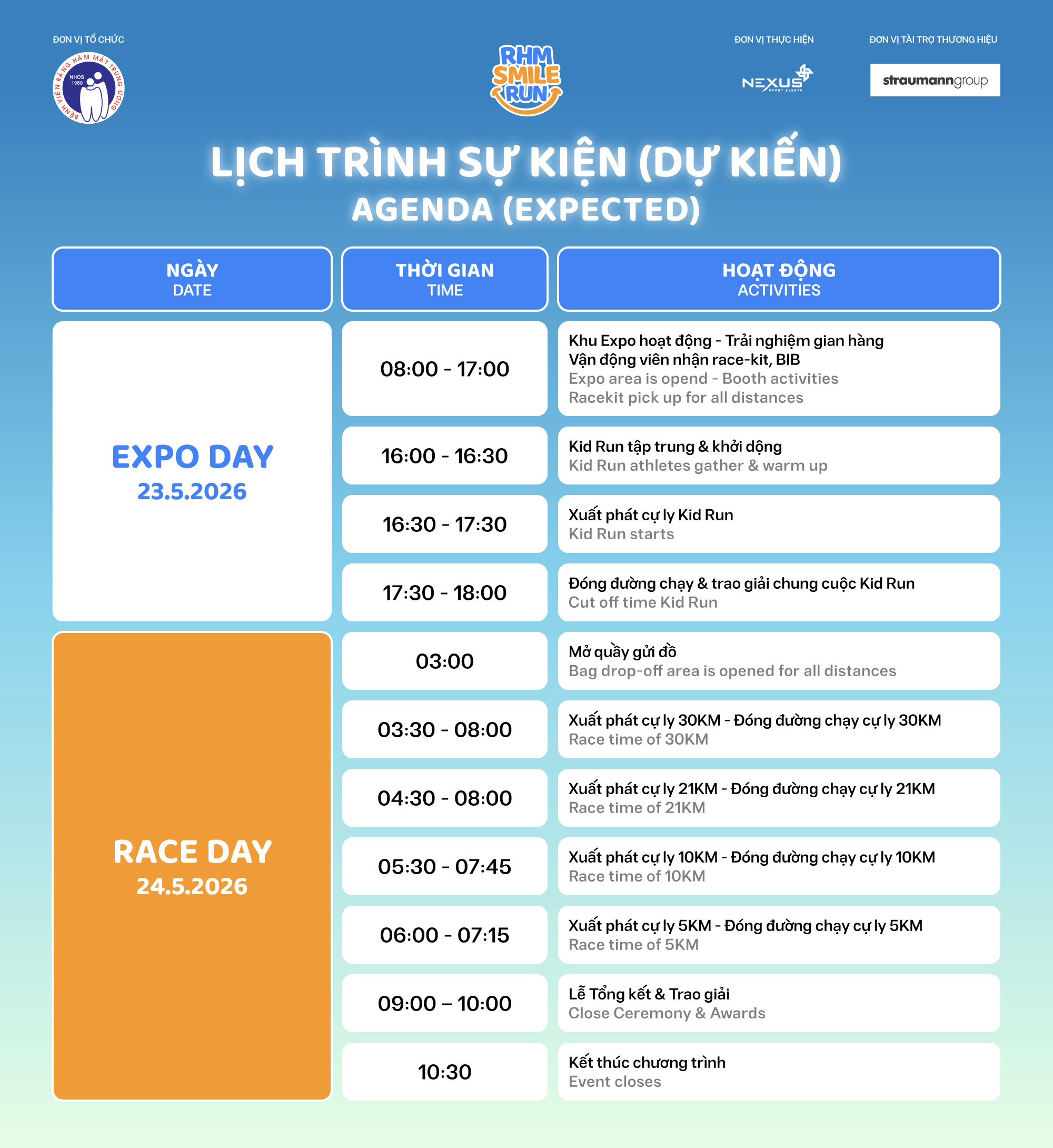 Lấy hình ảnh nụ cười làm biểu tượng, giải chạy truyền cảm hứng về lối sống năng động, đồng thời nâng cao nhận thức về chăm sóc sức khỏe toàn diện. Đặc biệt, mỗi bước chạy còn đồng hành cùng hành trình mang lại những nụ cười trọn vẹn hơn cho trẻ em mắc dị tật hở hàm ếch.