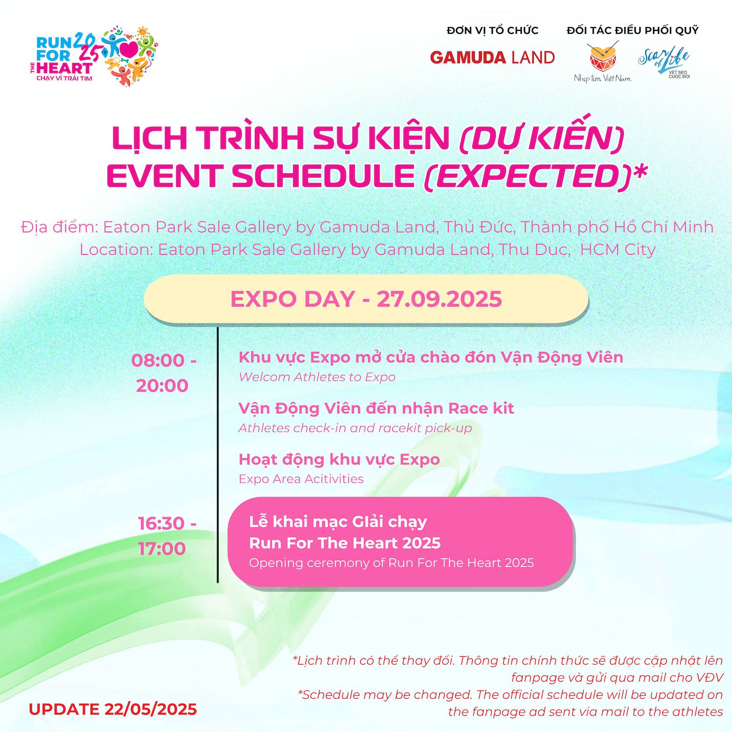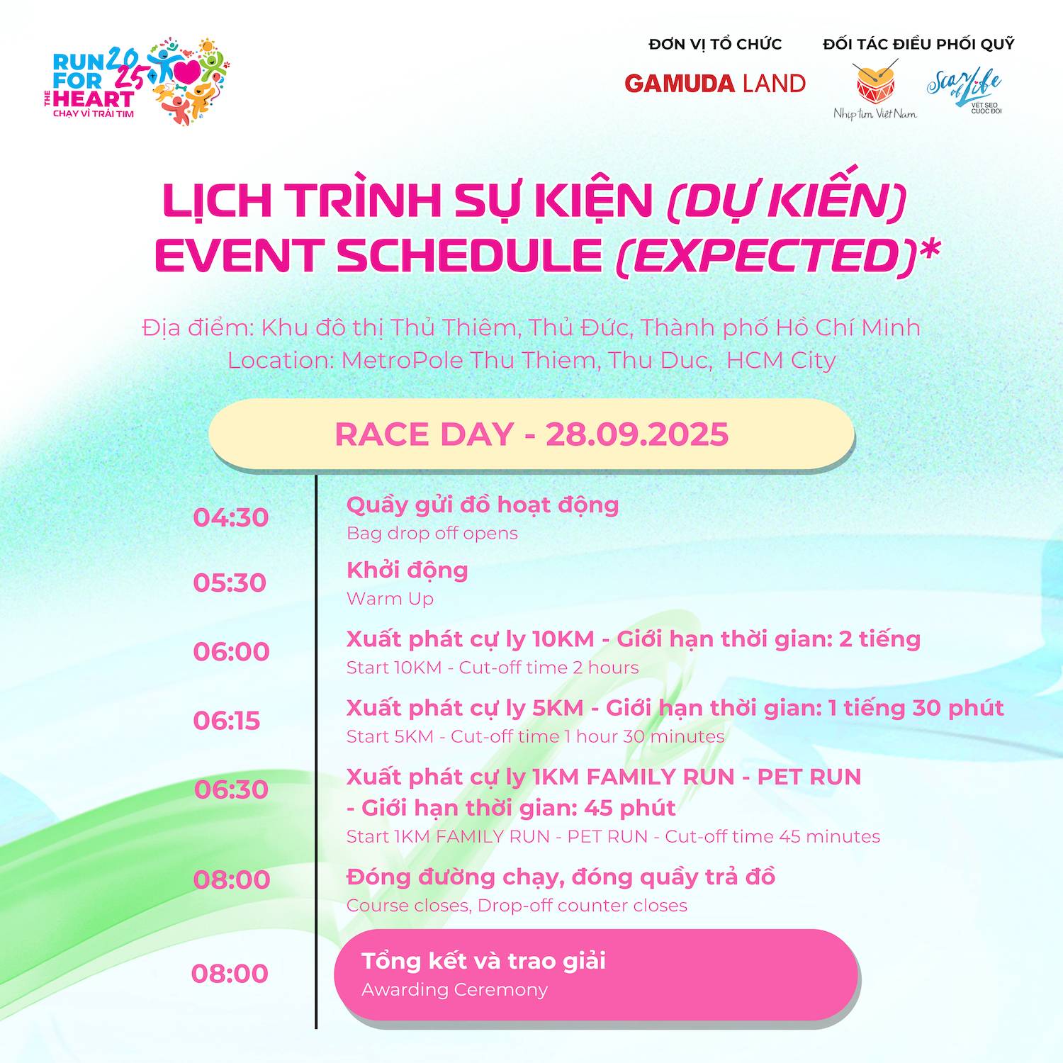 Run For The Heart là giải chạy gây quỹ mổ tim cho trẻ em có hoàn cảnh khó khăn, do Gamuda Land phối hợp cùng Quỹ Nhịp Tim Việt Nam và Quỹ Vết Sẹo Cuộc Đời tổ chức thường niên từ năm 2013. Chương trình qua hơn 10 mùa giải đã phẫu thuật thành công cho hơn 1.700 trái tim. Năm 2025 đánh dấu lần tổ chức thứ 11 – cột mốc đáng nhớ cho hành trình nhân ái bền bỉ, thắp lên “nhịp sống” cho hàng ngàn trái tim bé nhỏ.