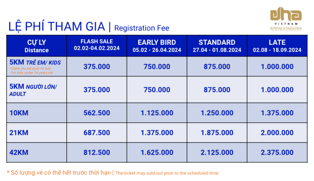 *Thời gian: BTC sẽ gửi thông báo đến VĐV qua email trong vòng 1 tháng trước ngày thi đấu.