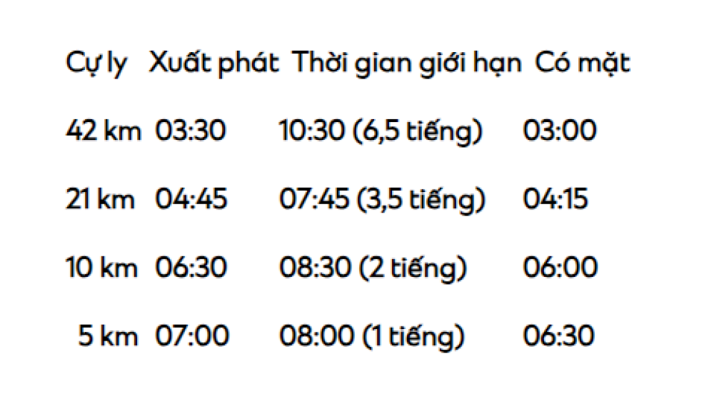 VĐV cần có mặt tại vạch Xuất phát trước giờ chạy 30 phút.