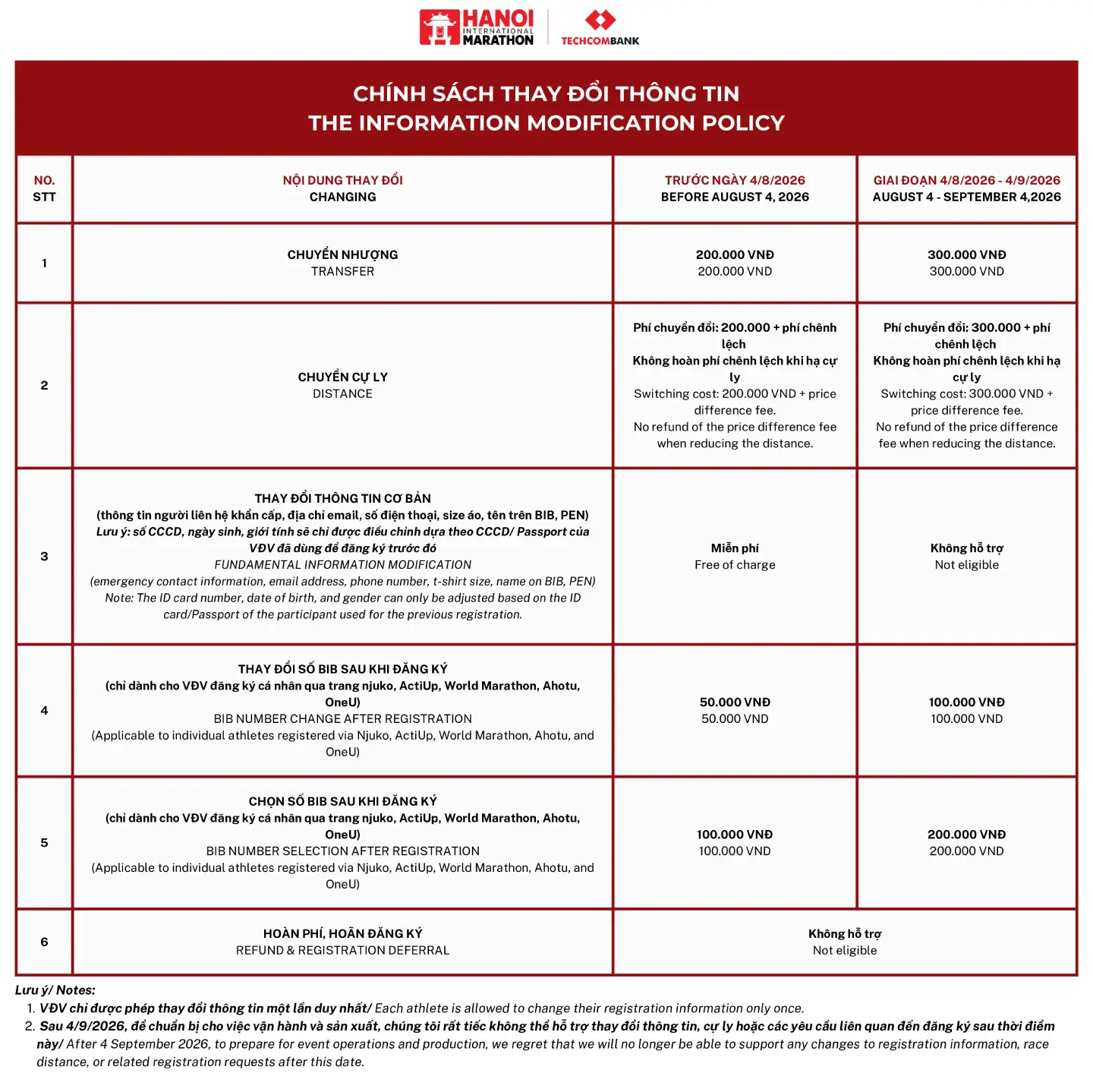+ 5KM, 10KM, 21KM, 42KM: 4/10/2026 (Chủ nhật)