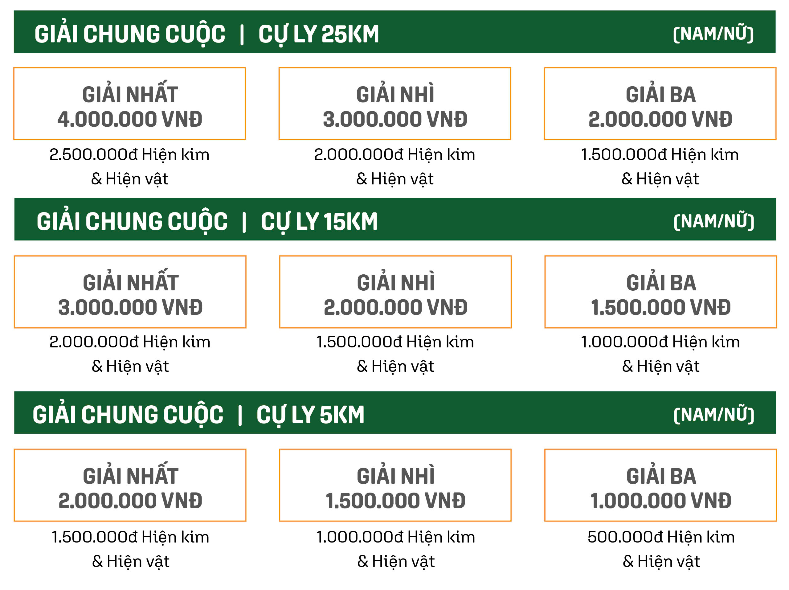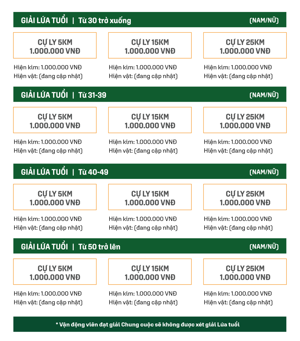 VĐV tham gia các cự ly 15km, 25km phải ít nhất đủ 18 tuổi tính đến ngày chạy.