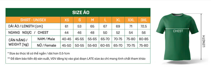 Các thay đổi / chuyển nhượng từ 01-15 ngày trước sự kiện sẽ không nhận đúng size áo thay đổi.