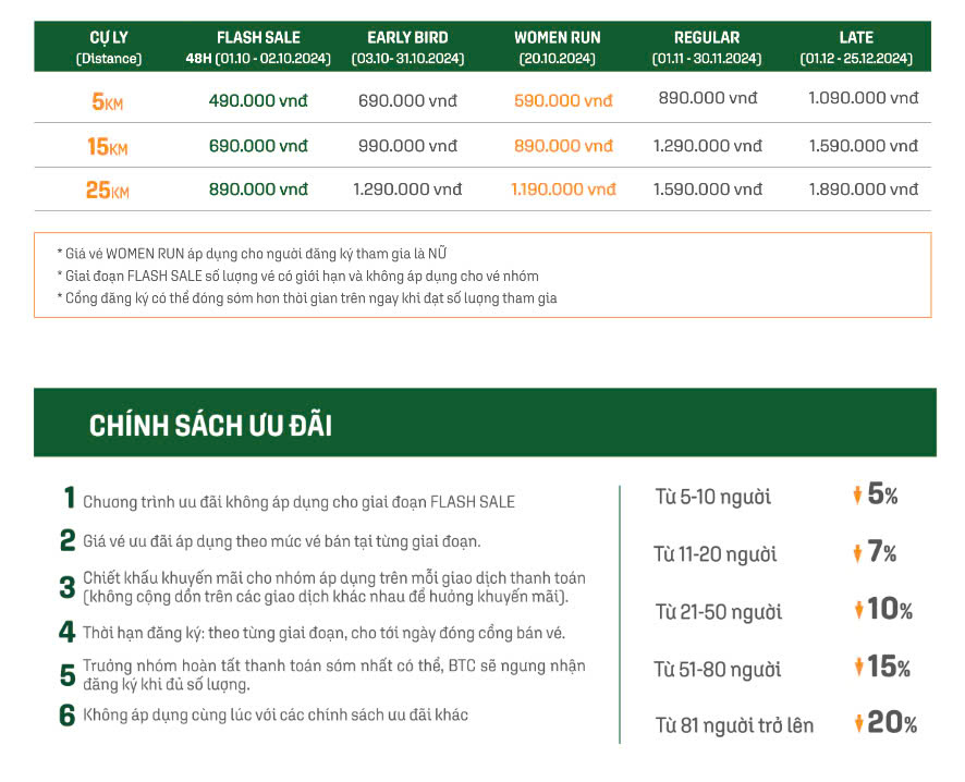 Phí thay đổi cự ly tại ngày nhận BIB (trước 15h00) là 350,000 VNĐ