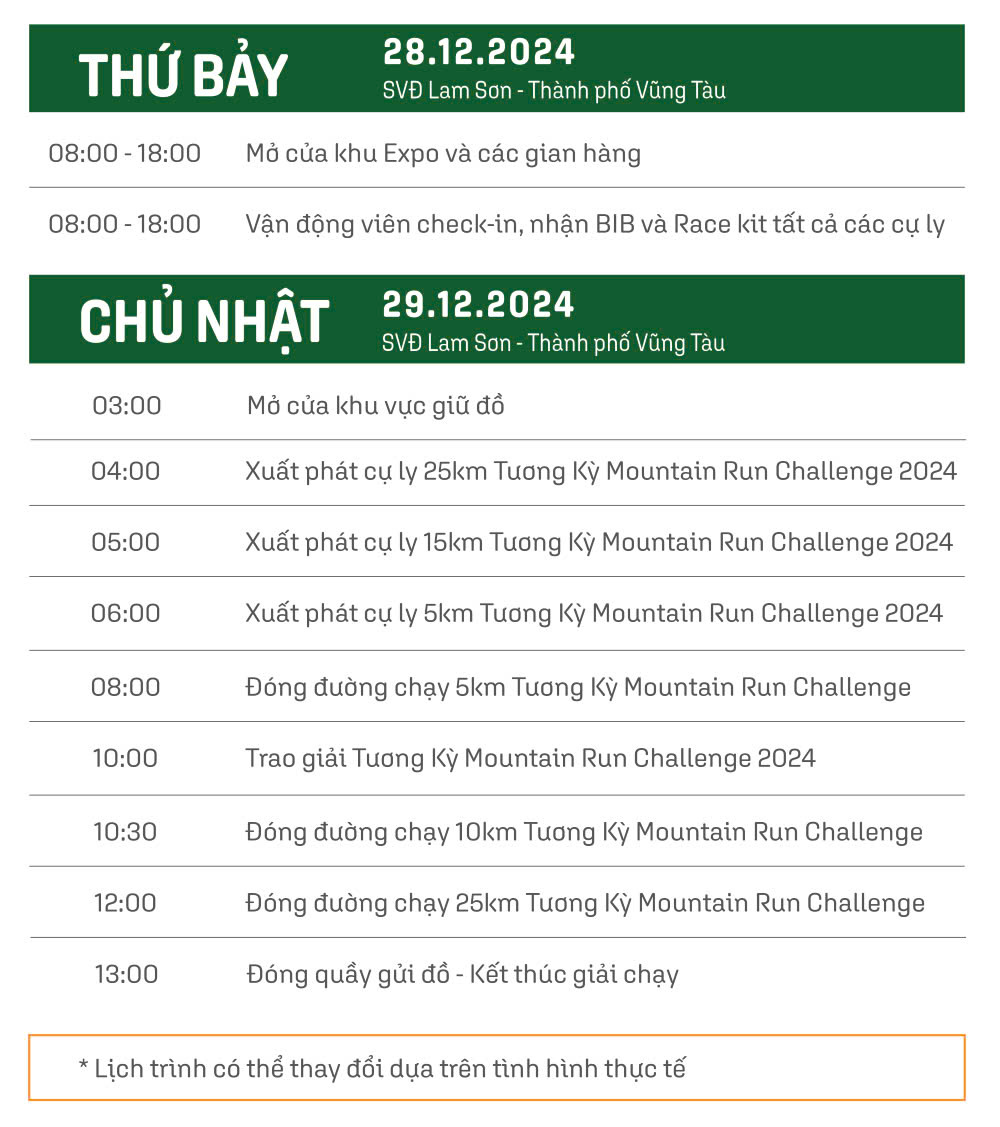 Mọi yêu cầu thay đổi cự ly khi hết chỗ đều không được xác nhận.