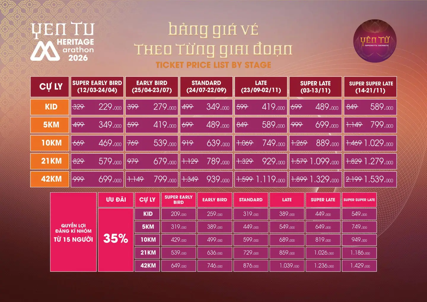 - 42Km: VĐV phải từ 18 tuổi trở lên tính trong năm thi đấu.